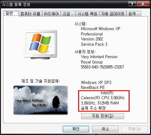 위 사진에 네모박스 칸에 "3.06Ghz"가 보이실 것입니다.