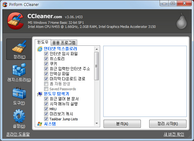 이번에 소개할 프로그램은..최적화 프로그램인 씨클리너입니다.