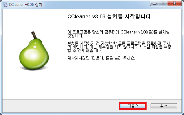 그러면 씨클리너 설치 창이 바로 이렇게 뜹니다
