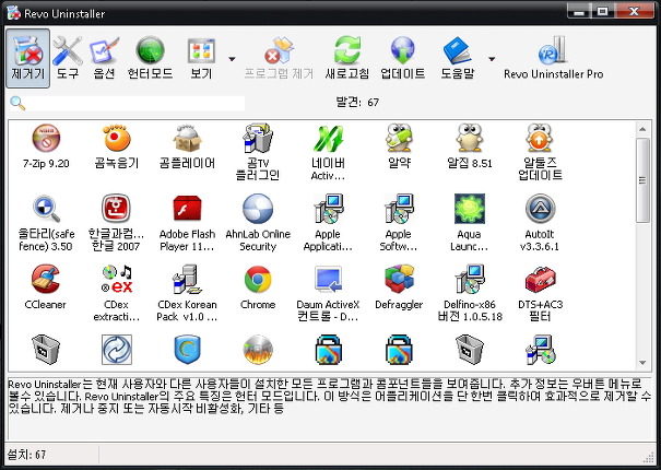 프로그램이 완전히 제거되지않는 단점이있습니다.