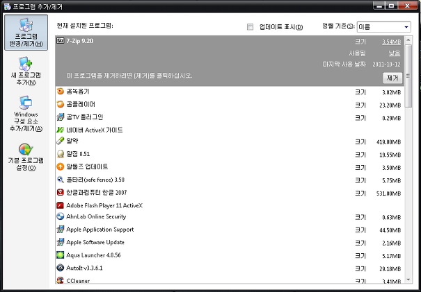 흔히 프로그램을 제거하실때..제어판-프로그램 추가/제거를 통해 제거하실텐데..